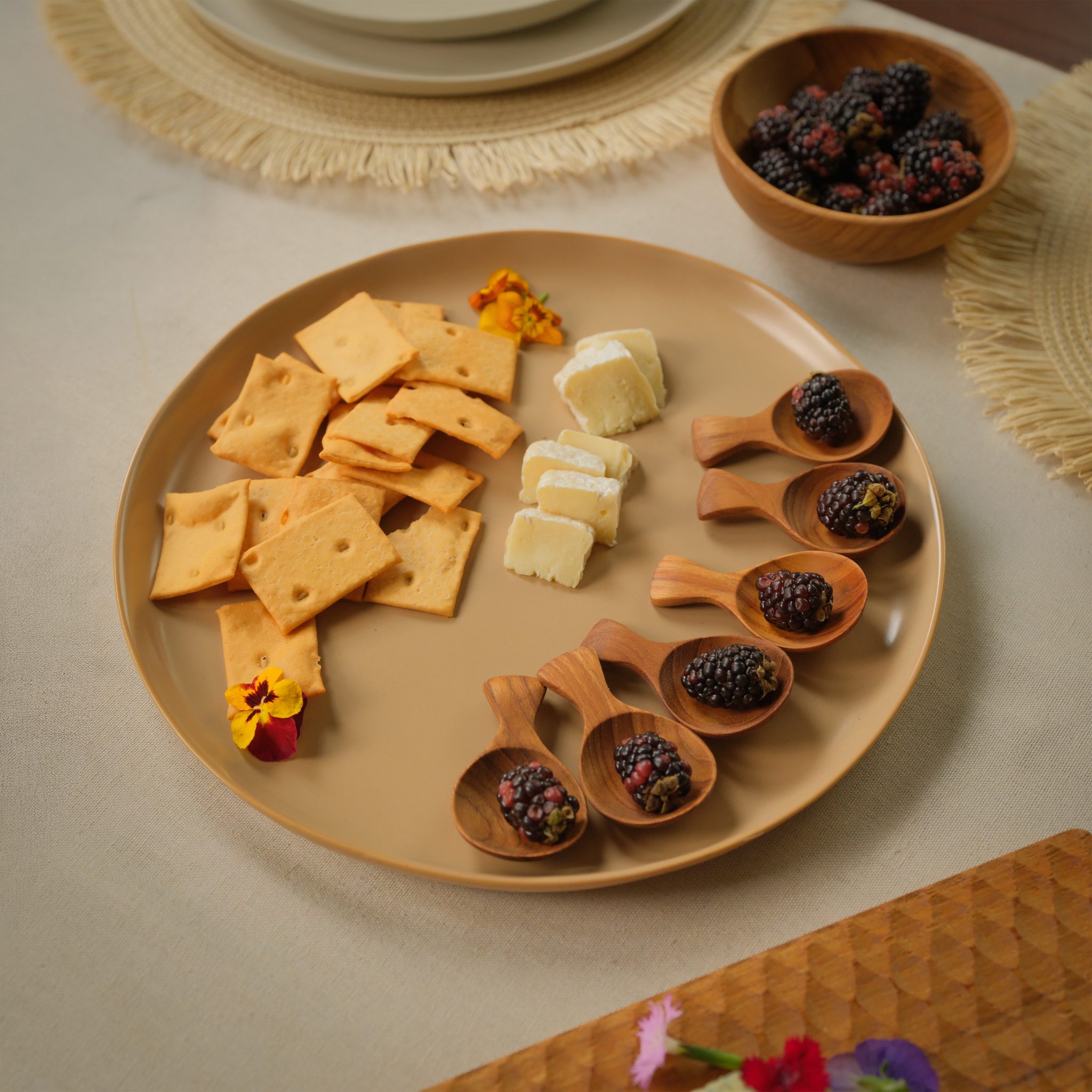 Medium ceramic plate for dinner or serving cheese, vegetables or fruit, for both Oriental and Western cuisine.