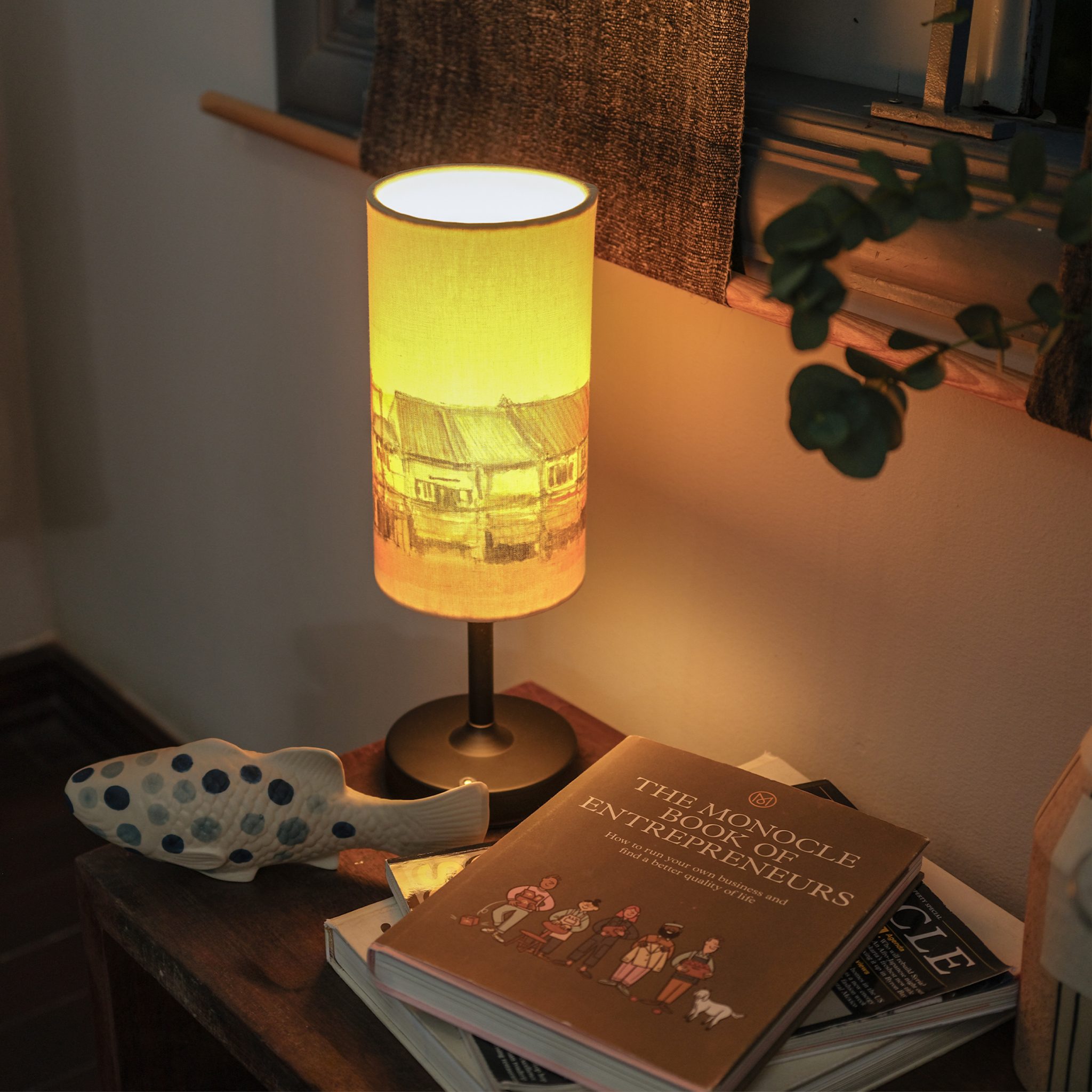 Night lamp compact in size, slim in form with a diffused glow that brings warmth and ambiance into the night.